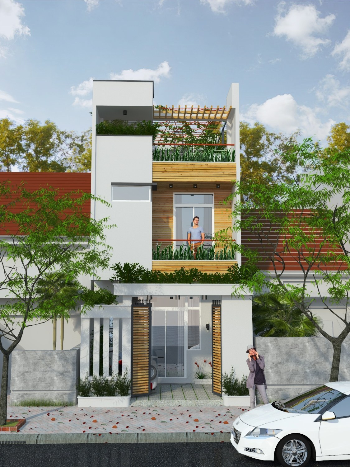 Vườn đứng tại mặt tiền.